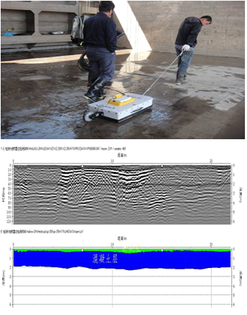 3.对1#-24#闸室底板、左进水闸底板、右进水闸底板的钢筋分布状况进行地质雷达无损检测。